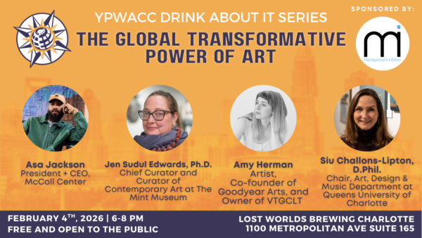 On February 4th, join YPWACC for the next installment of our Drink About It program series at Lost Worlds Brewing Charlotte in Midtown. This session, “The Transformative Power of Art,” will be a moderated conversation between a panel of experts.